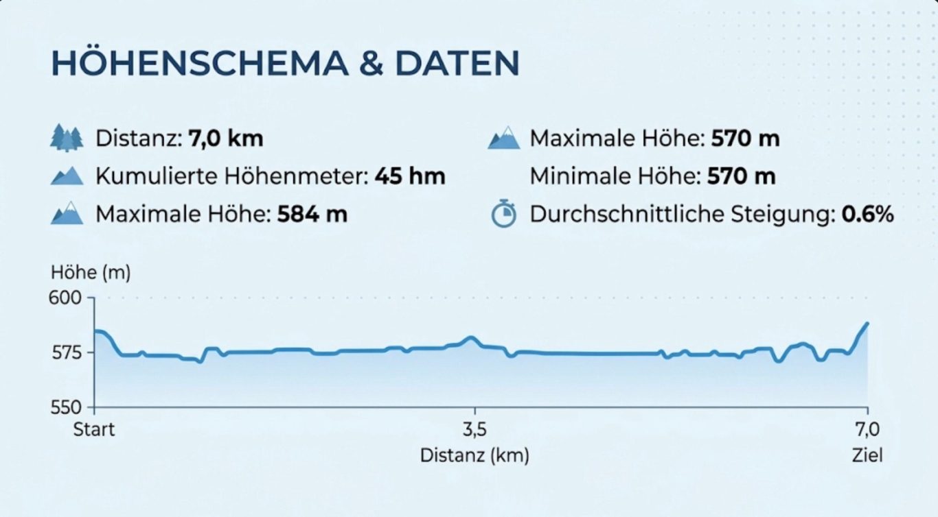 Nach drei Runden à 7 km ergibt sich die Gesamtdistanz von 21,1 km.